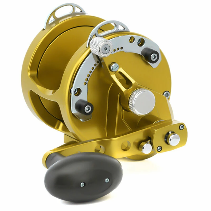 5:1 gear ratio in high and 2.1 in low gear. This reel is the answer for either vertical or Yo-Yo jigging. Perfect for using braided lines with a Mono topshot.